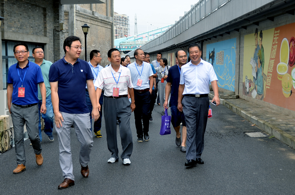 卞總向調(diào)研團(tuán)匯報(bào)了園區(qū)的歷史傳承、改造歷程及目前的基本發(fā)展情況。帶領(lǐng)參觀了益新面粉大樓及大礱坊歷史文化長廊,作為蕪湖工業(yè)象征的“兩個(gè)半煙囪”的僅存見證,百年益新面粉大樓在經(jīng)過修整后也再次踏上新的征程。而在今年8月正式竣工的大礱坊歷史文化長廊,利用墻繪的方式,生動(dòng)的記錄了礱的誕生以及大礱坊的工業(yè)歷史變遷,長達(dá)450米的手工墻繪,目前已成為蕪湖的一張文化名片。
