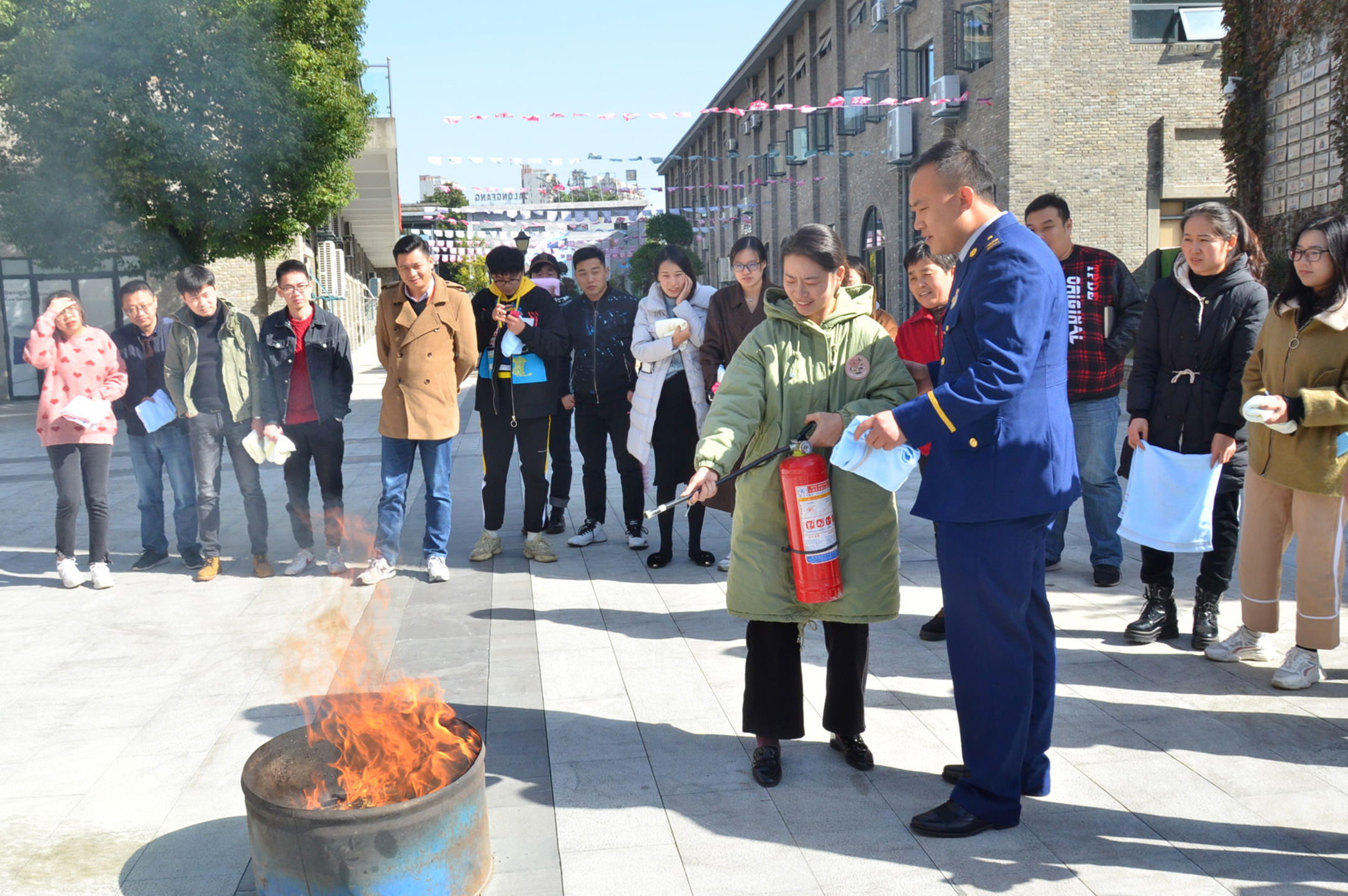 隨后,在室內(nèi)模擬了火災(zāi)發(fā)生時(shí)的逃生演練,使全體人員了解和掌握如何識(shí)別危險(xiǎn)、如何采取必要的應(yīng)急措施、如何疏散人群等基本操作,一旦發(fā)生事故,懂得應(yīng)該做什么、能夠做什么、如何去做等。在演練開始時(shí),白教官為員工們講解及示范如何正確使用滅火器,大家在理解了使用方法后,克服內(nèi)心恐懼后,對(duì)油桶火進(jìn)行撲滅,體驗(yàn)了滅火過程。